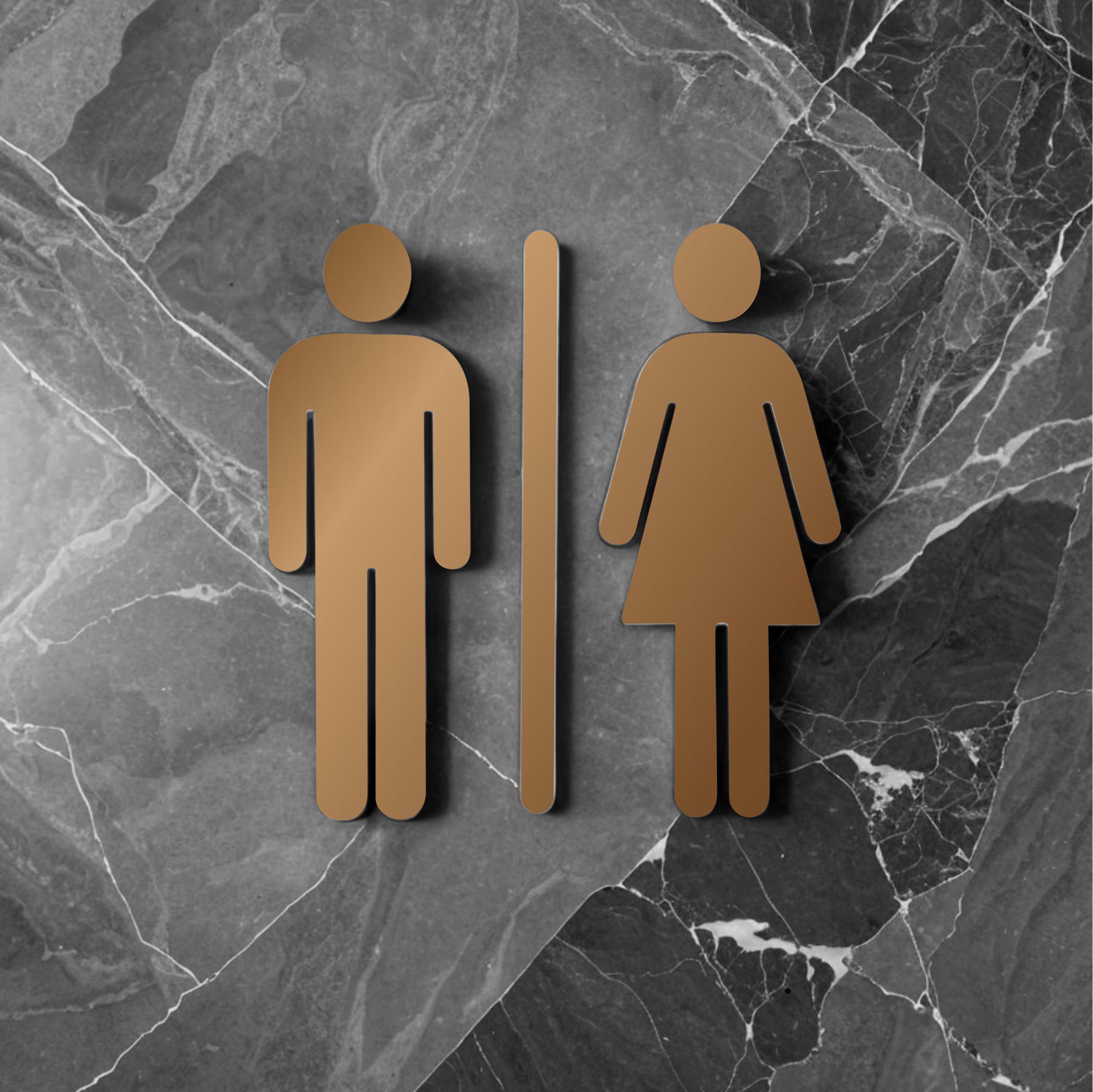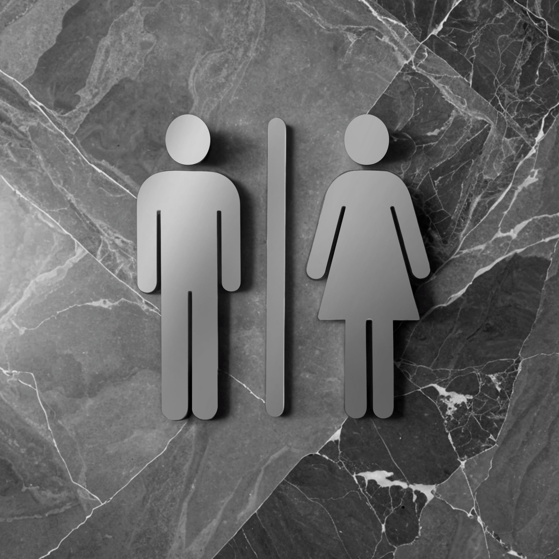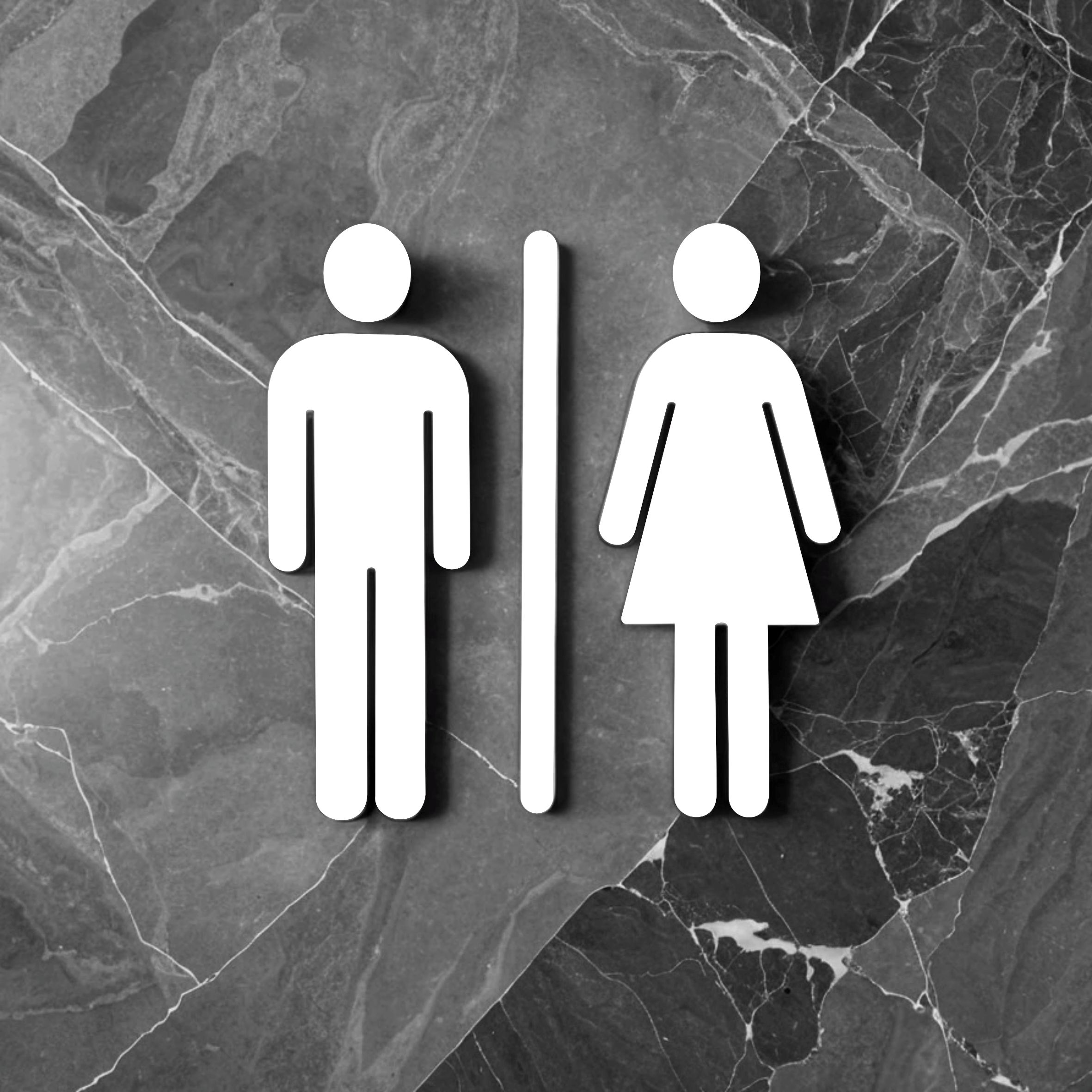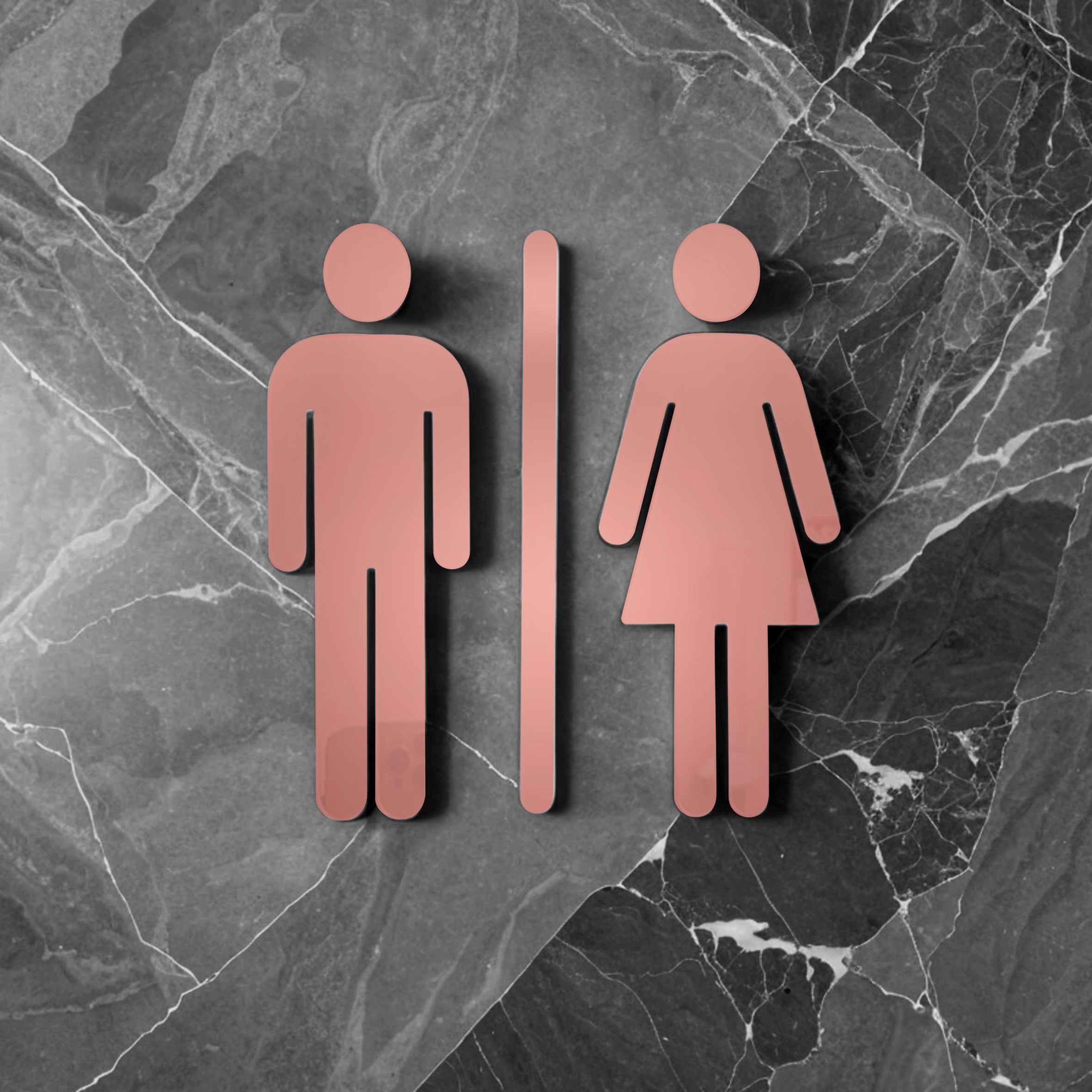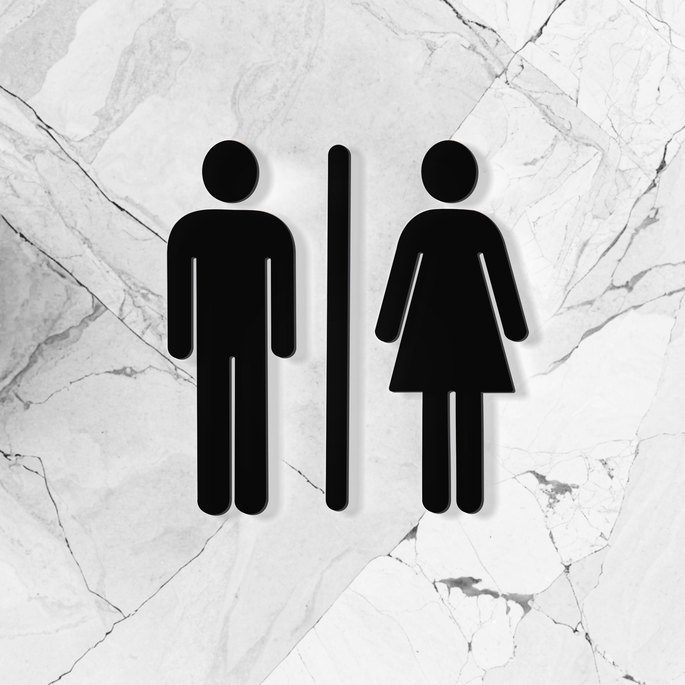 01 Kit de Placas Indicativas Banheiro Masculino / Feminino em acrílico 2mm.