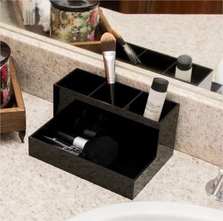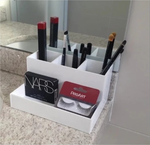 Pode ser usado para pinceis de maquiagem, pinceis de pintura, lápis e canetas, paletas , batons.. entre outros. Organizador multiuso disponível nas cores preto, branco e transparente.