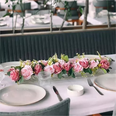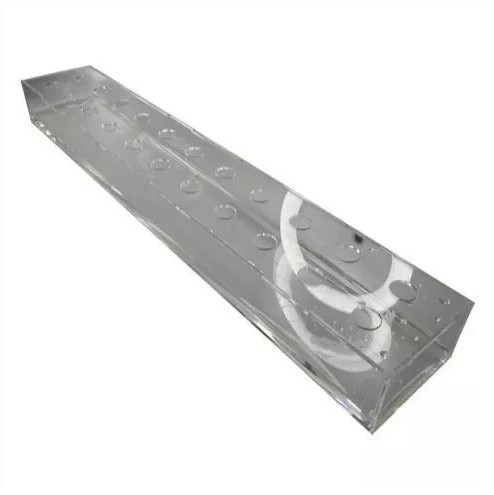 Belíssimo vaso de flor para centro de mesa retangular, feito em acrílico transparente, de 4mm.